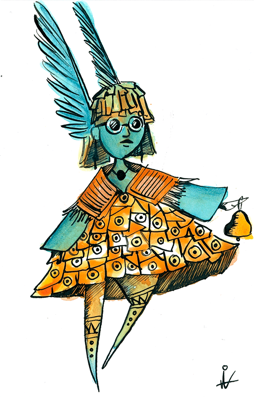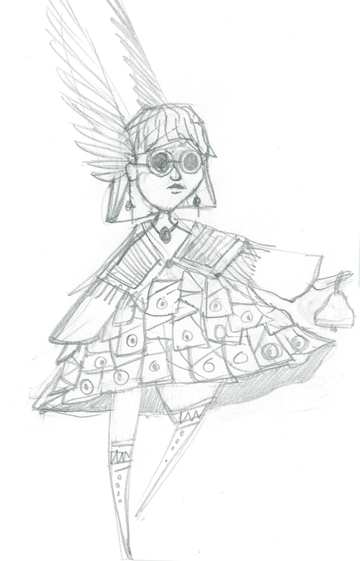character design and research with geometric shapes. Colour pencils.